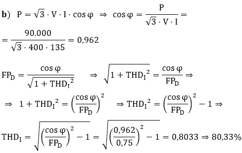 Una instalación trifásica operando a 400 V y 50 Hz presenta un consumo de potencia activa de 90 kW con una corriente de línea medida de 135 A. Considerando que la potencia aparente total, que incluye los efectos de la distorsión armónica, es de 120 kVA, se solicita determinar: