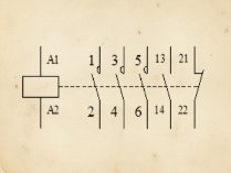 En el esquema del contactor, los contactos principales se numeran de acuerdo a las reglas para el marcado de los bornes principales. Por ejemplo, 1-2, 3-4, 5-6 (para contactores tripolares). Esta numeración también suele añadirse junto a los bornes de entrada (L1, L2, L3) y salida (T1, T2, T3).